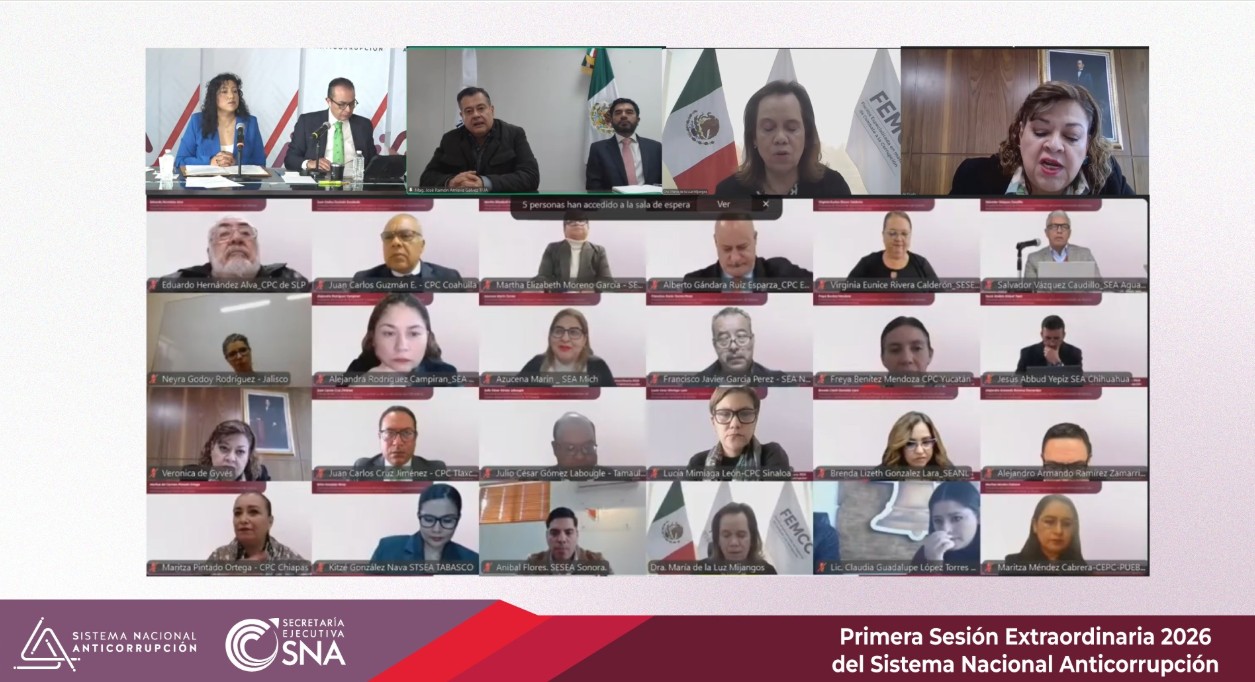 En el marco de la Ley General del Sistema Nacional Anticorrupción, se llevó a cabo en -modalidad virtual- la Primera Sesión Extraordinaria 2026 del Sistema Nacional Anticorrupción, este acto tuvo como propósito presentar un análisis respecto de los avances en materia de la política nacional.